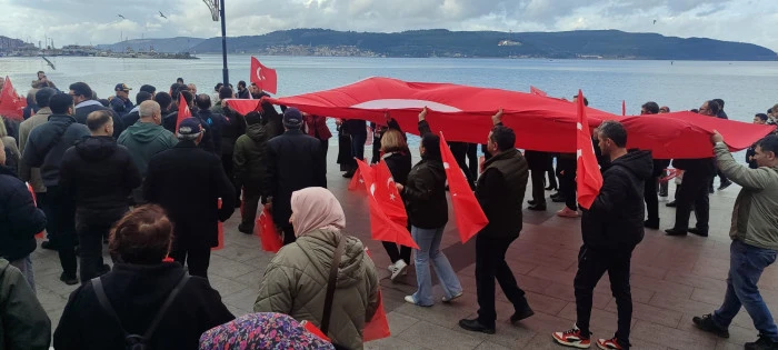 Çanakkale’de düzenlenen Bayrağa Saygı Yürüyüşü’nde şehit aileleri ve gaziler, bayrak ve vatan sevgisi için sert ve duygusal mesajlar verdi.