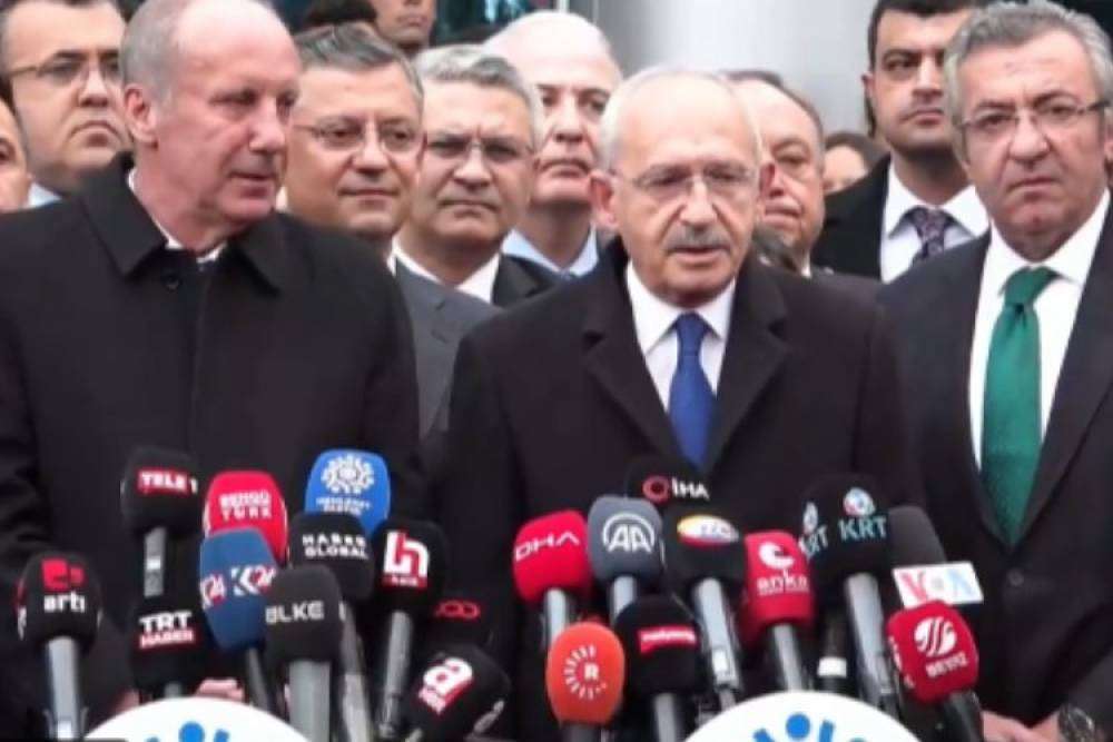 CHP Genel Başkanı ve Millet İttifakı Cumhurbaşkanı adayı Kemal Kılıçdaroğlu, Memleket Partisi Genel Başkanı ve Cumhurbaşkanı adayı Muharrem İnce'yi partisini